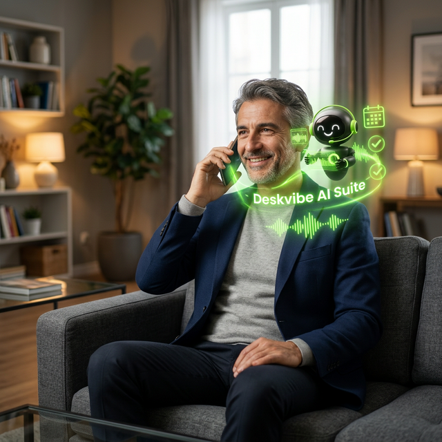 Deskvibe AI Suite mette al lavoro 5 agenti con intelligenza artificiale nella tua azienda: rispondono al telefono, gestiscono i clienti, organizzano l'attività, fanno crescere il fatturato e curano i social — al posto tuo, 24 ore su 24.Deskvibe AI Suite: piattaforma AI all-in-one per attività italiane. 5 agenti con intelligenza artificiale: receptionist vocale, CRM automatico, gestionale ERP, business growth agent e social media manager AI.